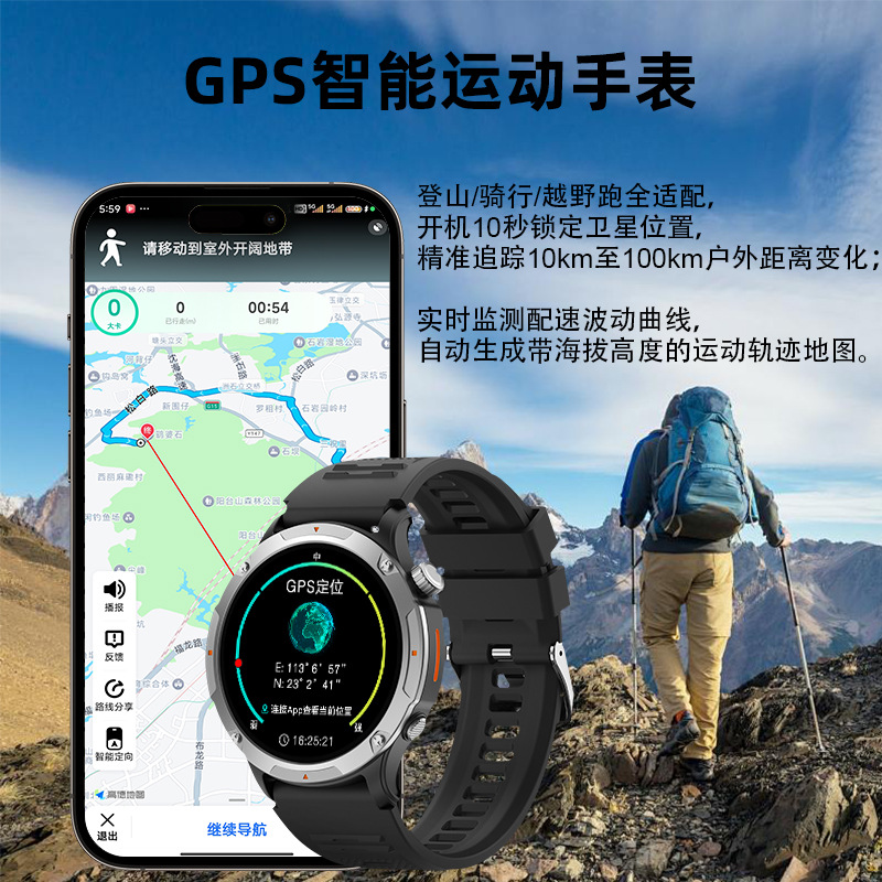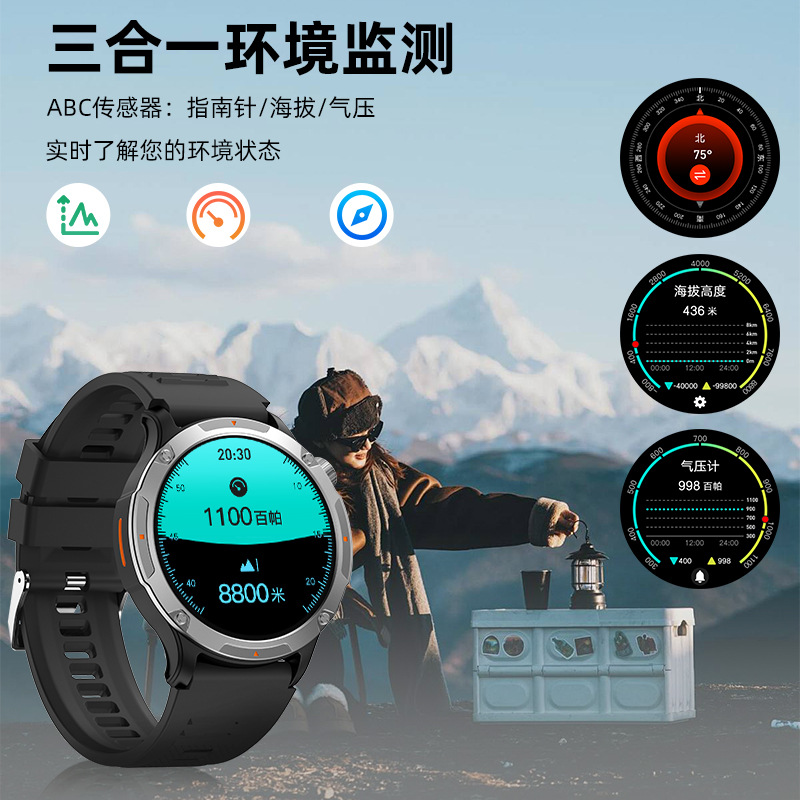 2025 Outdoor T92 Bluetooth GPS Sports 1.43AMOLED Compass Altitude Smart Watch